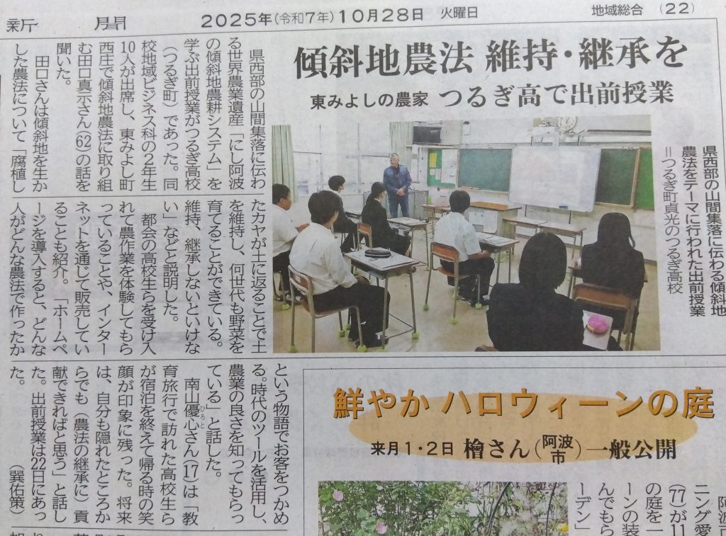 我が母校「つるぎ高校」で世界農業遺産の出前授業を行いました。